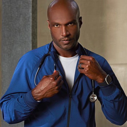 Expand your scrub wardrobe with the Amplify set from Barco One, made with sustainable fabric.